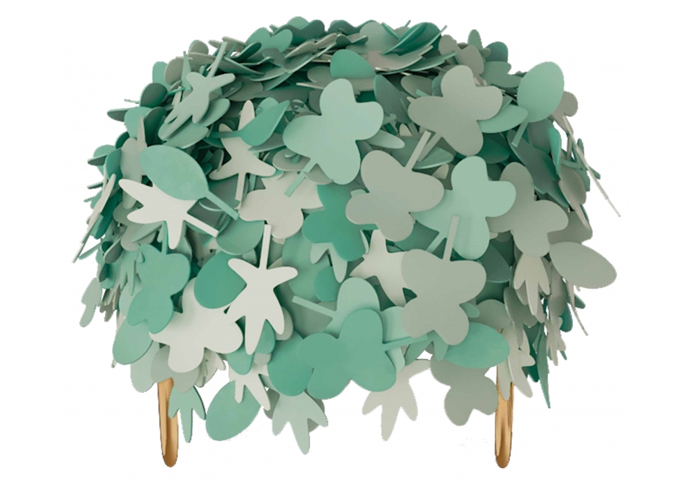 Leaf designed by Marcantonio for Scarlet Splendor is a pouf with brass feet with structure in wood, foam and leather.