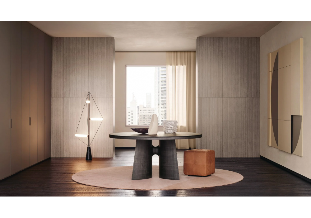 Onda designed by Poliform is an upholstered pouf with covering available in leather or fabric.