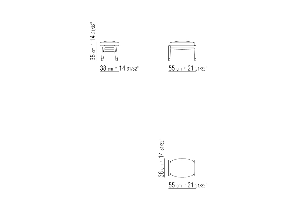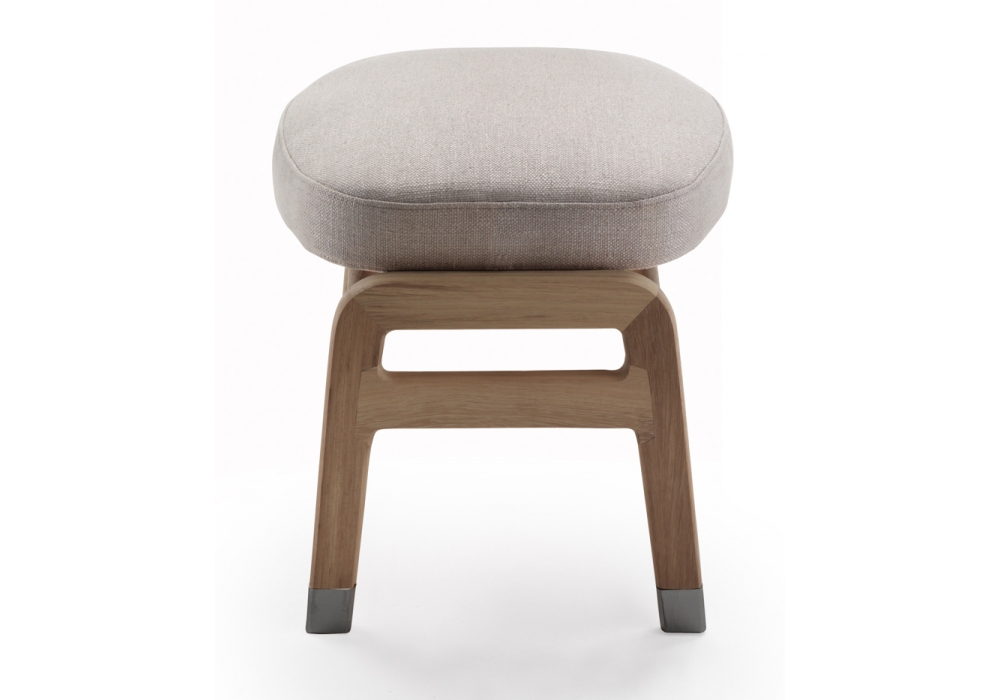 Ortigia designed by Design Center for Flexform is a pouf composed of solid Canaletto walnut or ash structure, feet in die-cast zamak and polyurethane padded plywood seat upholstered in leather or fabric.