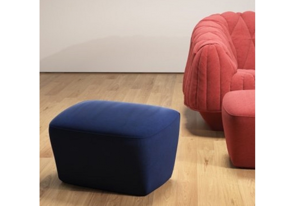 Cover designed by Marie Christine Dorner for Ligne Roset is a pouf / footstool with wooden structure made from 3-layer particleboard. Upholstery available in fabric or leather. Black polypropylene gliders.