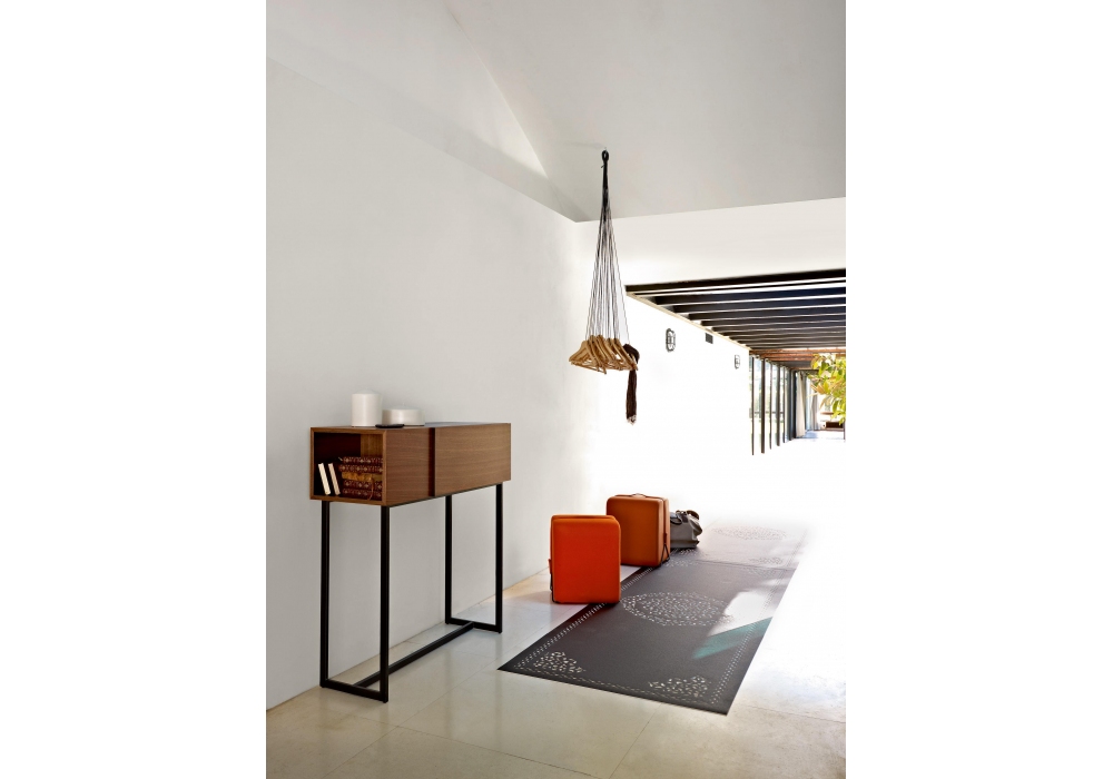 Mobidec designed by Pierre Charpin for Ligne Roset is a pouf/footstool with padding in high resilience polyurethane Bultex foam. A fabric/leather strap, matching the footstool, encircles the seat and serves as a handle to enable Mobidec to be lifted and moved with ease.