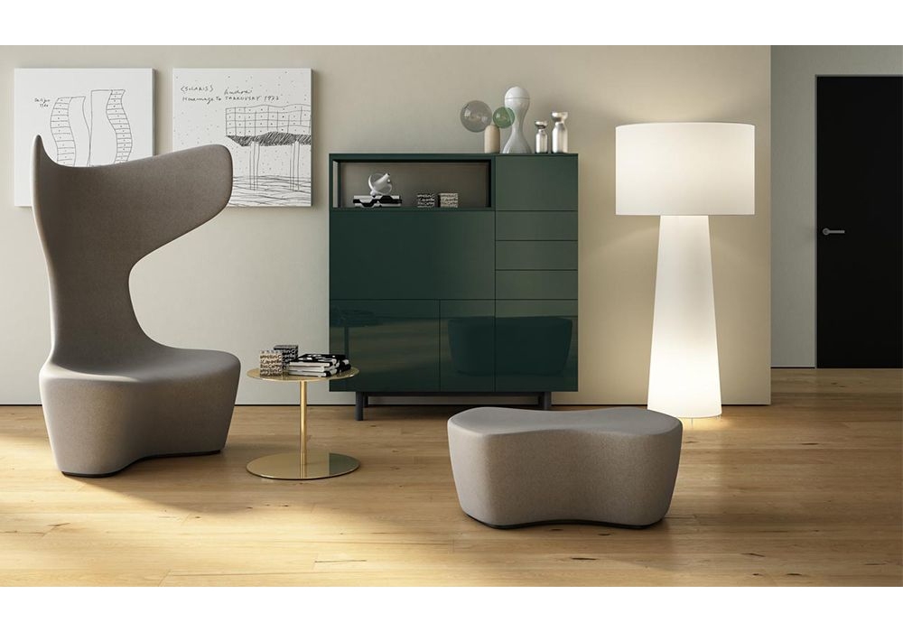 Drum designed by Mac Stopa for Cappellini is a pouf made with fabric, leather or bielastic Optical fabric upholstery. Available in different finishes and dimensions.