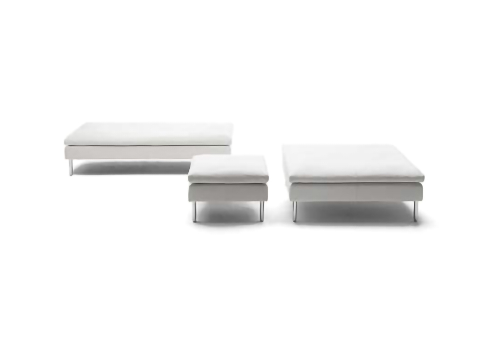 DS-5 designed by Antonella Scarpitta for De Sede is a pouf with structure made of solid beech, glossy chromed subframe and upholstery in leather or fabric. Available in different finishes and dimensions.