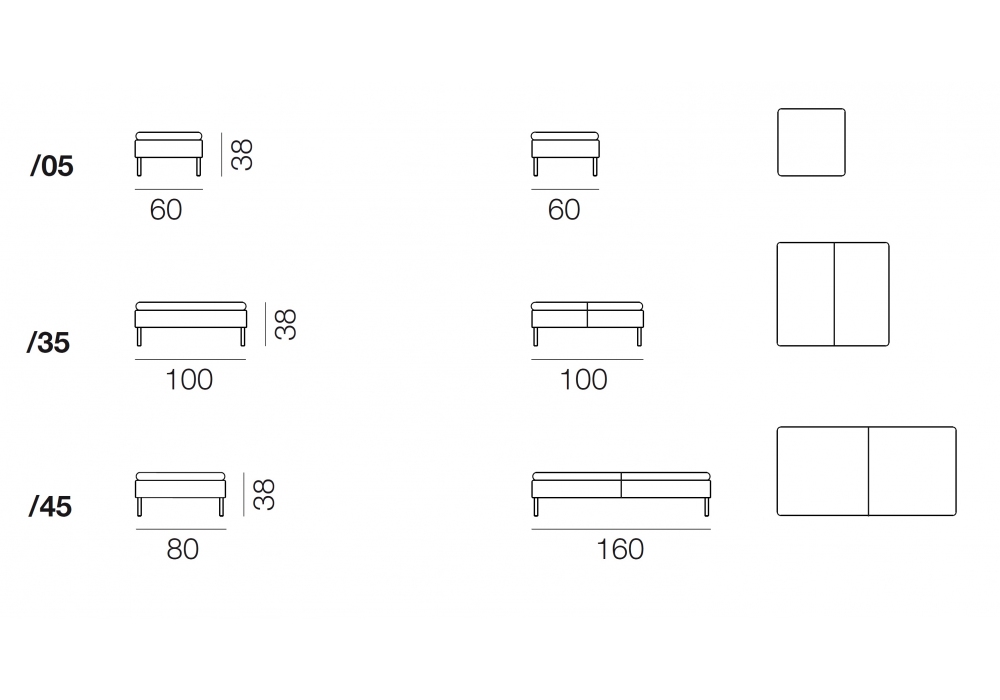 | Dimensions | 60 x 60 x H 38 cm (DS-5/05); 100 x 100 x H 38 cm (DS-5/35); 160 x 80 x H 38 cm (DS-5/45). |
