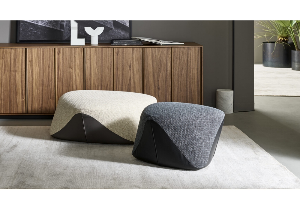 Seki designed by Marconato and Zappa for Bonaldo is a pouf with non-removable fabric cover and leather insert in the lower part. Available in two sizes.