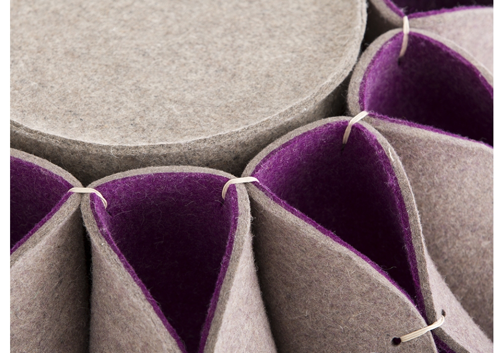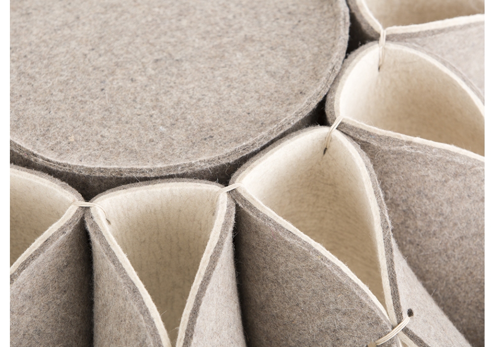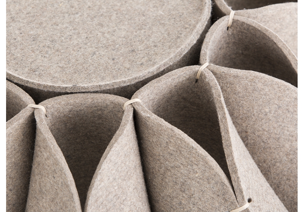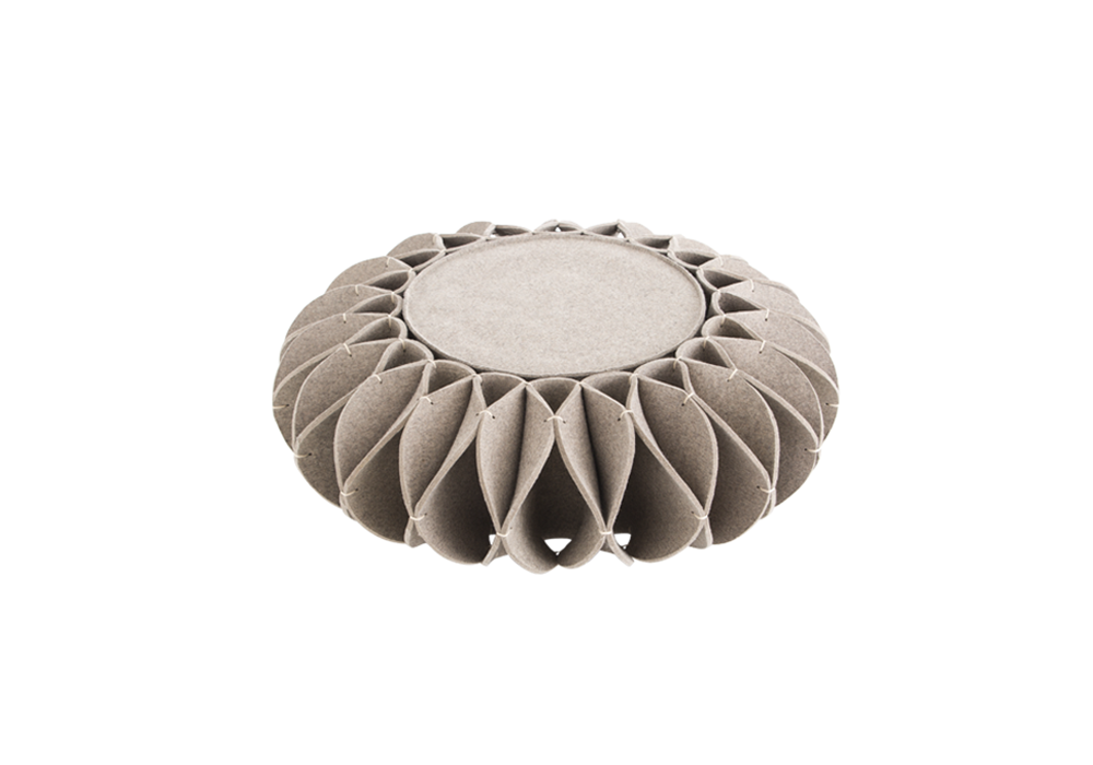 Ruff designed by Romero & Vallejo for Gan is a Pouf made 100% with sewn wool felt and padding in expanded polystyrene and foam rubber. Available low or high model in different finishes.
