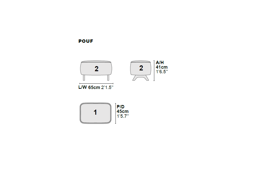 Bloom designed by Studio Debonademeo for Momenti is a pouf with structure in fir wood, padding in polyurethane foam. Feet in solid wood lacquered in white, black. Cover in different finishes, not removable.