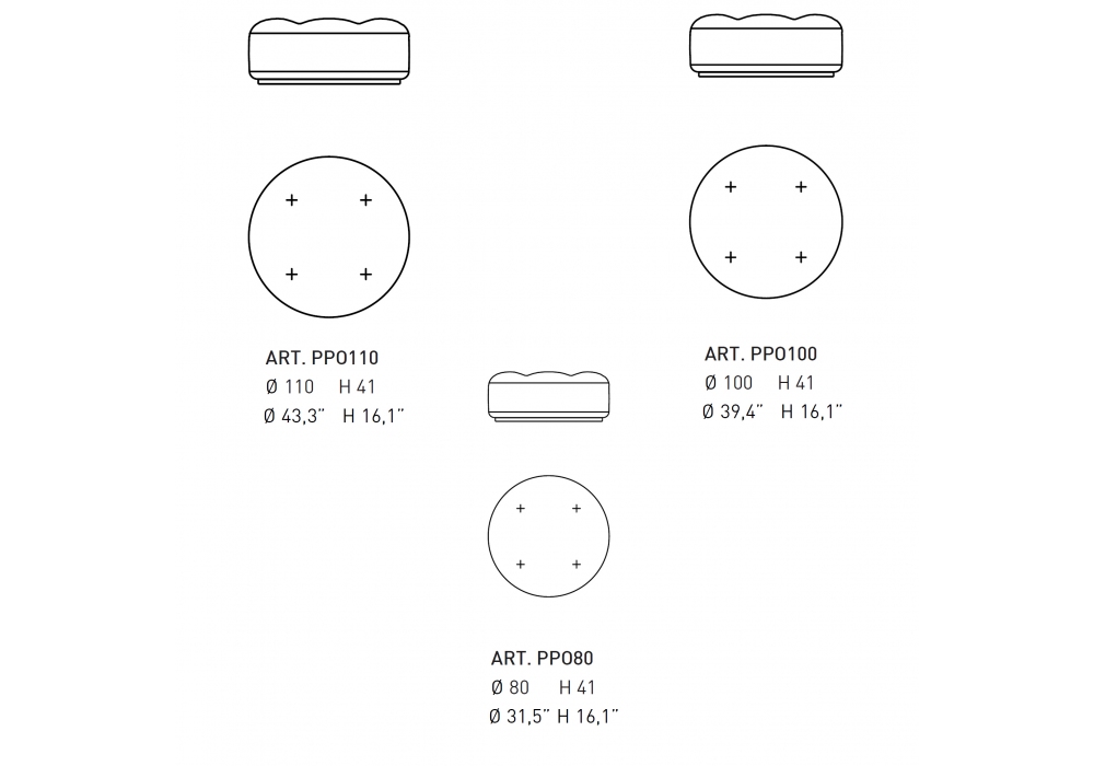 | Dimensions | Ø110 x H 41 cm(Mod.1); Ø100 x H 41 cm(Mod.2). |