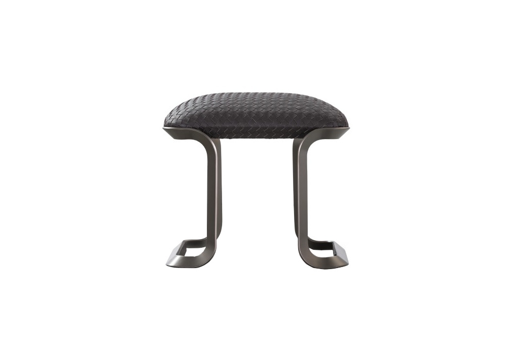 Milano designed by Blengini Ghirardelli for Turri is a pouf with weaving with structure in plywood with cushions in polyurethane foam. Upholstery in different leathers. Metal legs in brushed nickel finish with plastic feet.