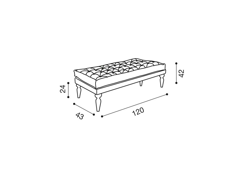 Luise designed and produced by Twils is a padded bench with upholstery available in various fabrics and colours. The feet (PIE8D) are sloping plates 24 cm high.