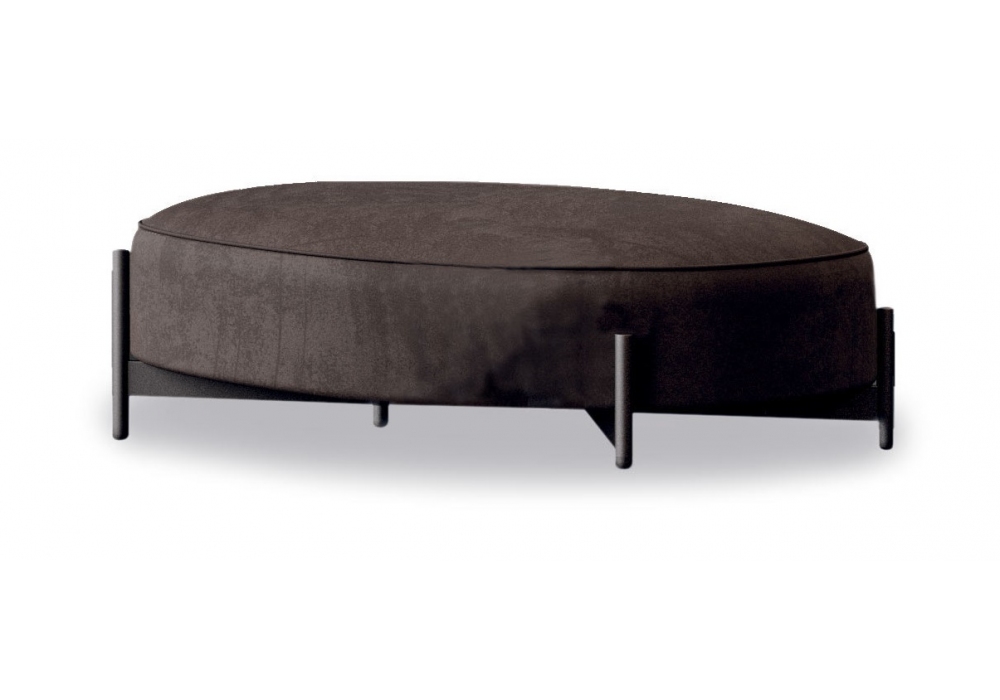 Virgin designed by Mauro Lipparini for MisuraEmme is a pouf made with an internal wooden structure covered with comfort rubber and a black painted metal base. Upholstery in fabric or leather.