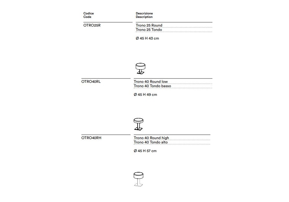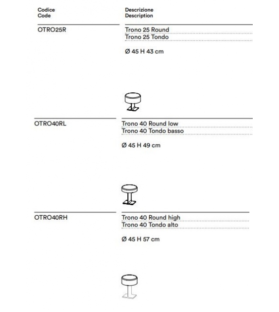 Trono designed by Umberto Bellardi Ricci for Tacchini is a round ottoman with metal leg and padded seat, upholstered in different fabrics and colours.