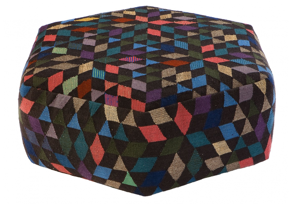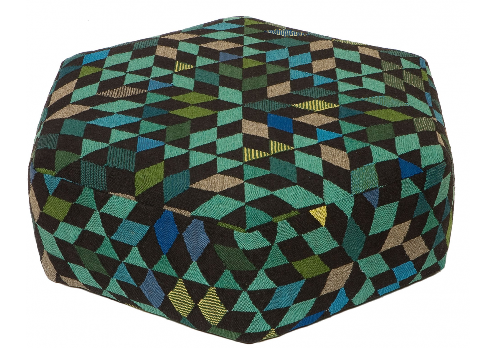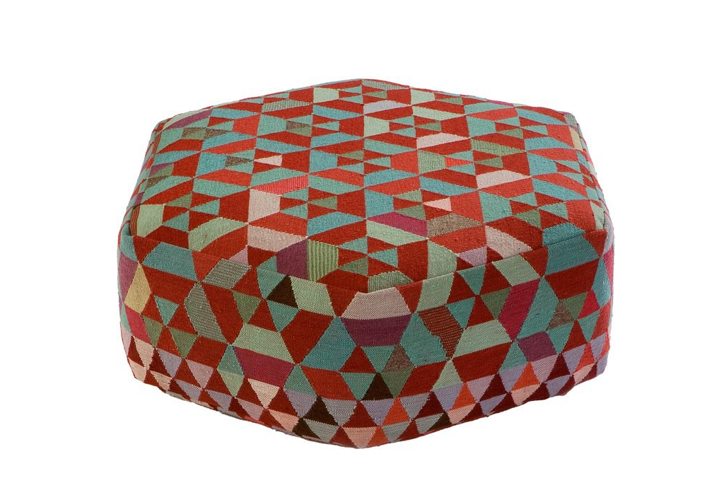 Triangles designed by Bertjan Pot for Golran is a pouf hand-knotted according to the KILIM technique. It is made with wool, silk and cactus fibres.