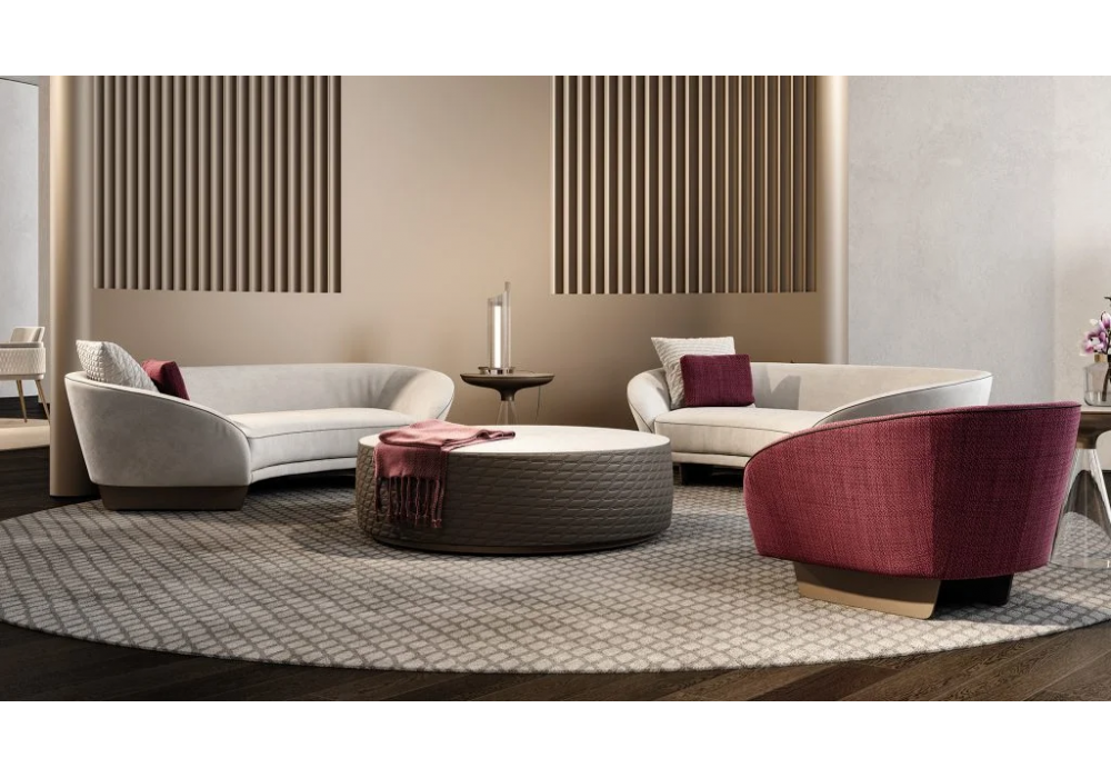 Circle designed by Emanuele Missaglia for Reflex Angelo is a pouf with internal wooden structure and plinth in Bronze finish. Upholstery in fabric or leather with side quilting option.
