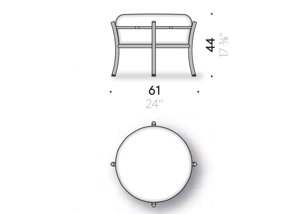 Smeralda designed by Anna von Schewen for Depadova is a pouf with a powder-coated stainless steel structure in matt anthracite grey and thermoplastic feet. The seat is in pine plywood, padded with polyurethane foam and polyester wadding lined with polyester velvet. The upholstery is completely removable in fabric available in different finishes.