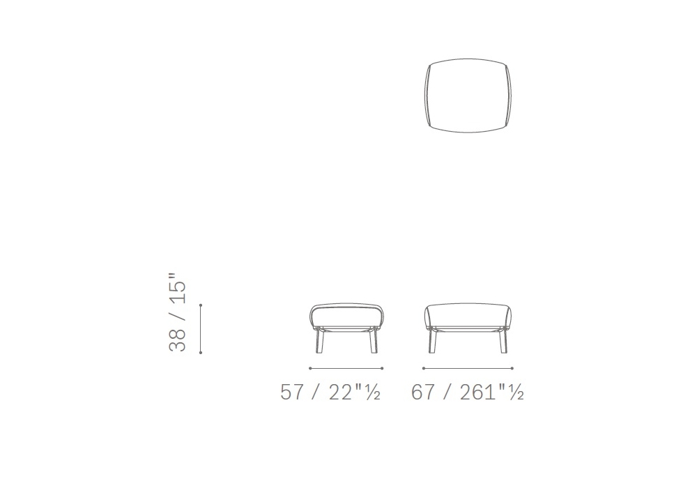 Archibald designed by Jean-Marie Massaud for Poltrona Frau is a pouf available with Pelle Frau® or removable fabric upholstery, with contrasting stitching in the leather version and tone-on-tone stitching for the fabric version. The structure is made of birch plywood, while the padding is in polyurethane foam, on which polyester wadding is applied in the areas where greater comfort is needed. The base is in wood, with the base and four feet in solid ash, in various finishes.