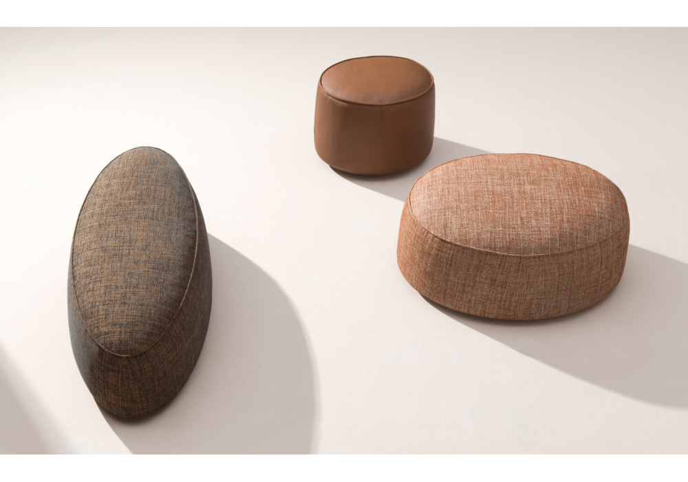 Pond designed by Setsu & Shinobu Ito for Désirée is a pouf with completely removable fabric or leather covering.