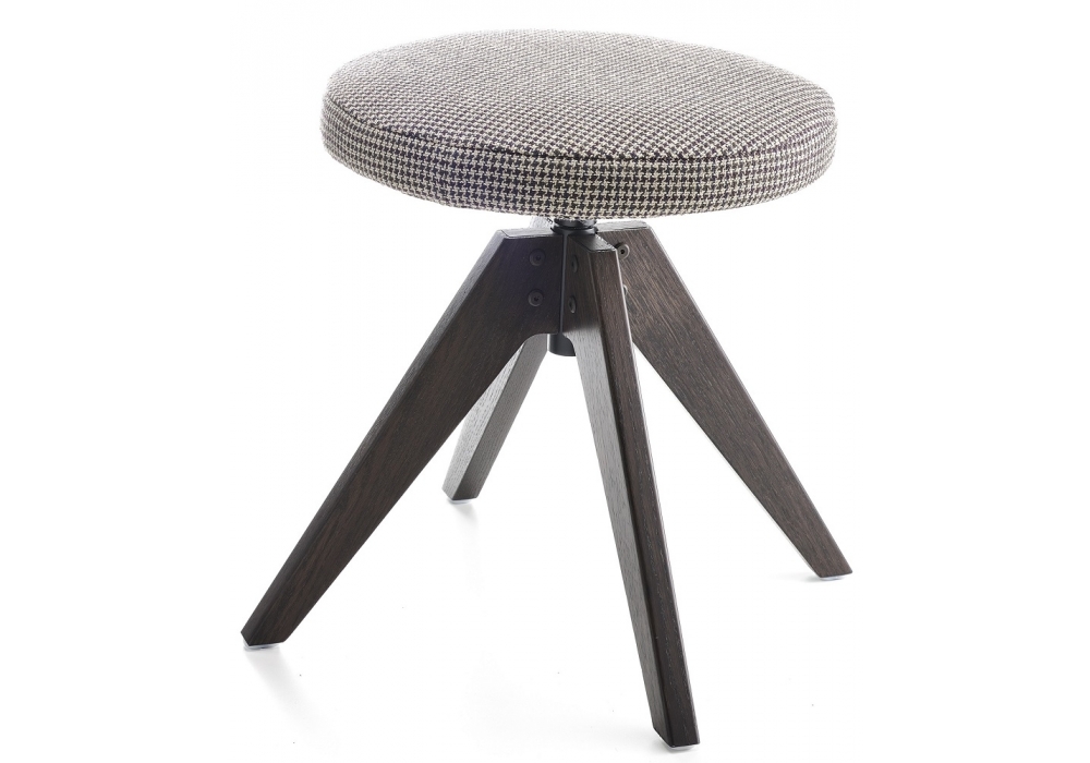 Flow Pouf with Plywood frame covered with non-deformable polyurethane and polyester wadding, fully removable, with VN 4-legged oak base (seat H48cm). Frame from transparent-lacquered natural oak solid wood with a natural, brown or bleached finish, with a lacquered aluminium coupling device in matt white or graphite 360° swivel. Seat height available: 48cm.