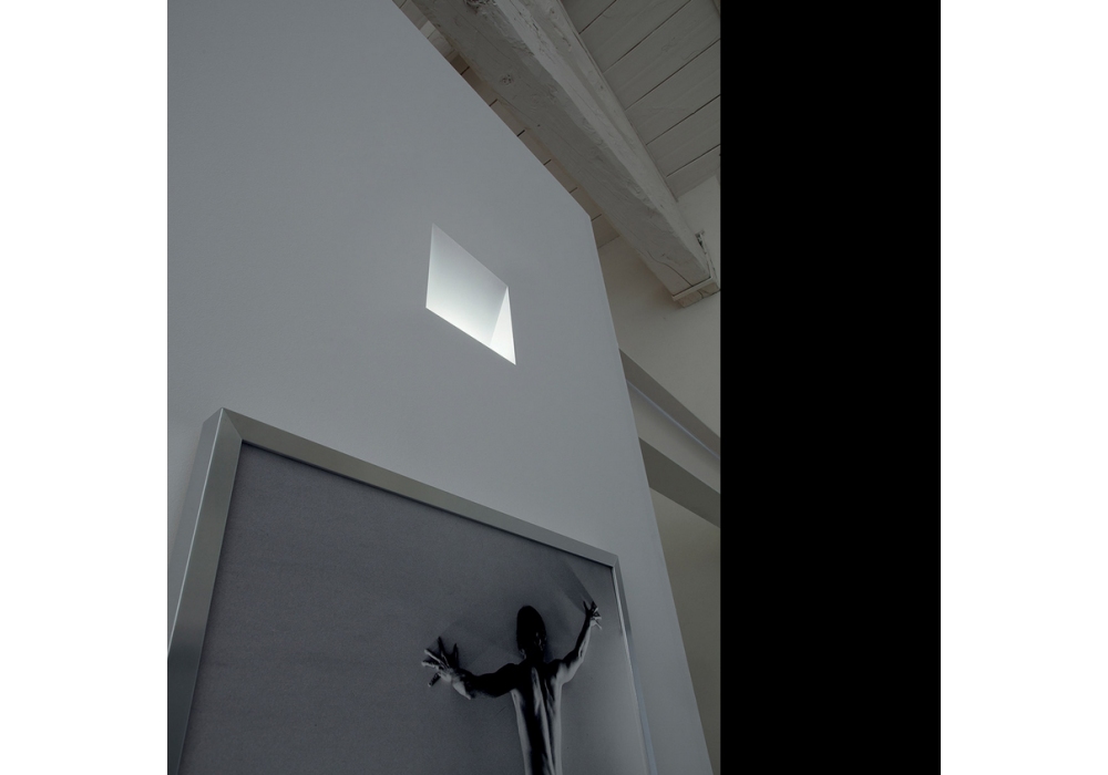 Pura designed and produced by Davide Groppi is a recessed wall lamp with a quadrangular shape mainly structured in metal in a single matt white finish. The light source used is of the LED type. Pura is complete with formwork for installation.