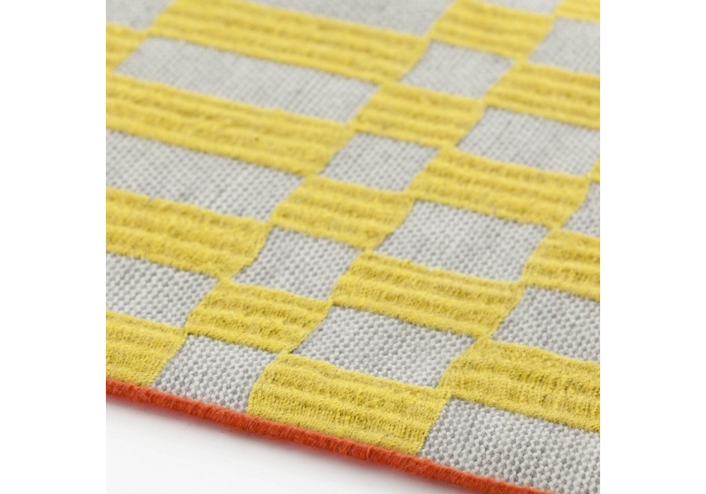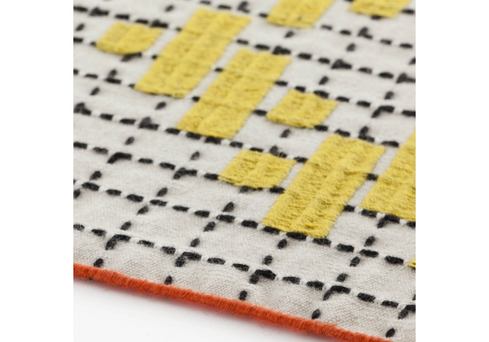 Bandas 1 designed by Patricia Urquiola for Gan is a rug. Product through a mix of techniques: hand loom, embroidery, crochet. Fiber 100% new wool. Velcro 100% polyester.