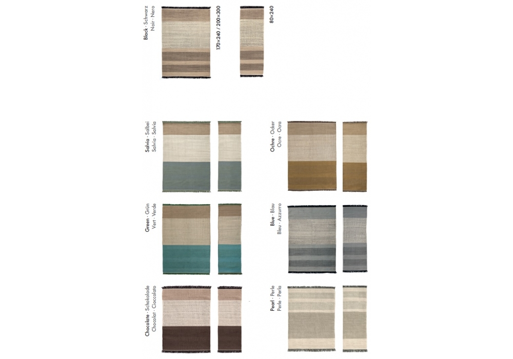 Tres Stripes designed by Nani Marquina and Elisa Padrón for Nanimarquina is a striped rug with a flat structure, hand-framed and made of 76% New Zealand wool and + 24% wool felt.