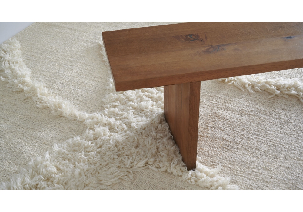Il Volo designed by Fede Cheti for Amini is a rug made with jute and New Zealand wool on a manual loom.