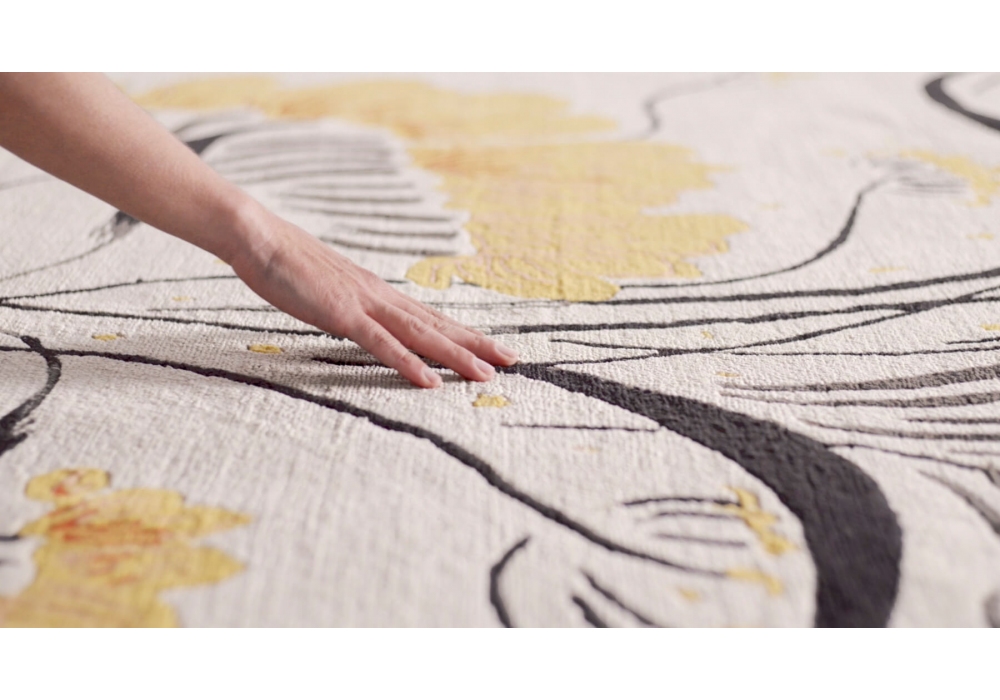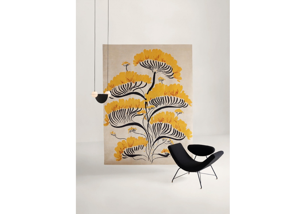 Valparaise designed by René Gruau for Amini is a hand-knotted rug in New Zealand silk and wool. Available in 2 finishes.