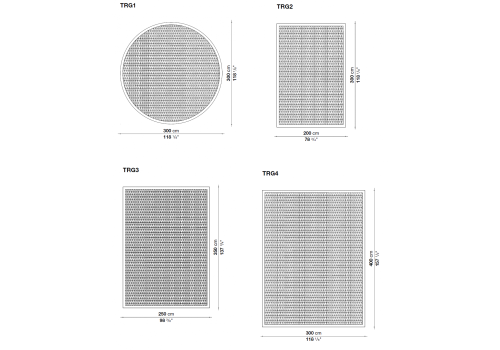 | Dimensions | Ø 300 cm; 200 x 300 cm; 250 x 350 cm; 300 x 400 cm |
