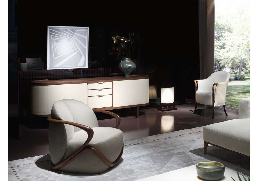 Stitch designed by Giorgetti is a rug handmade with Handloom technique in bamboo silk or natural silk, with cotton weft. A topstitch effect, obtained by aligning small contrasting segments, enhances the monochrome of the carpet.