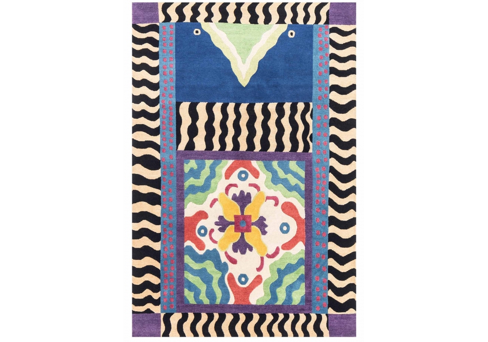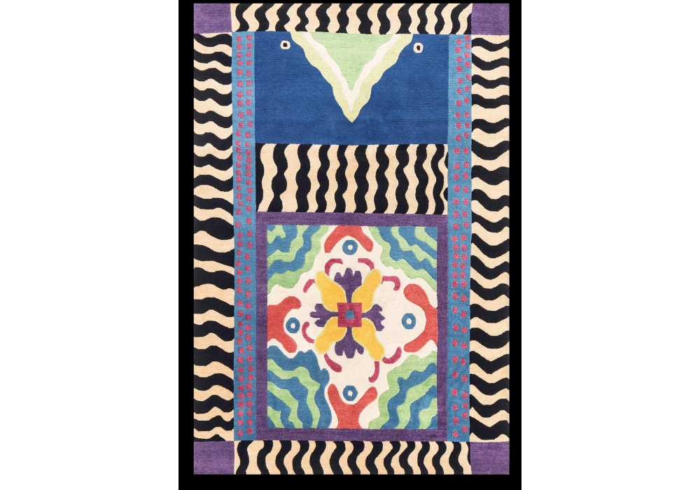 Sottovento designed by Nathalie Du Pasquier for Memphis Milano is a wool rug handmade by various artisans. Limited edition of 36 pieces. Available in two dimensions.
