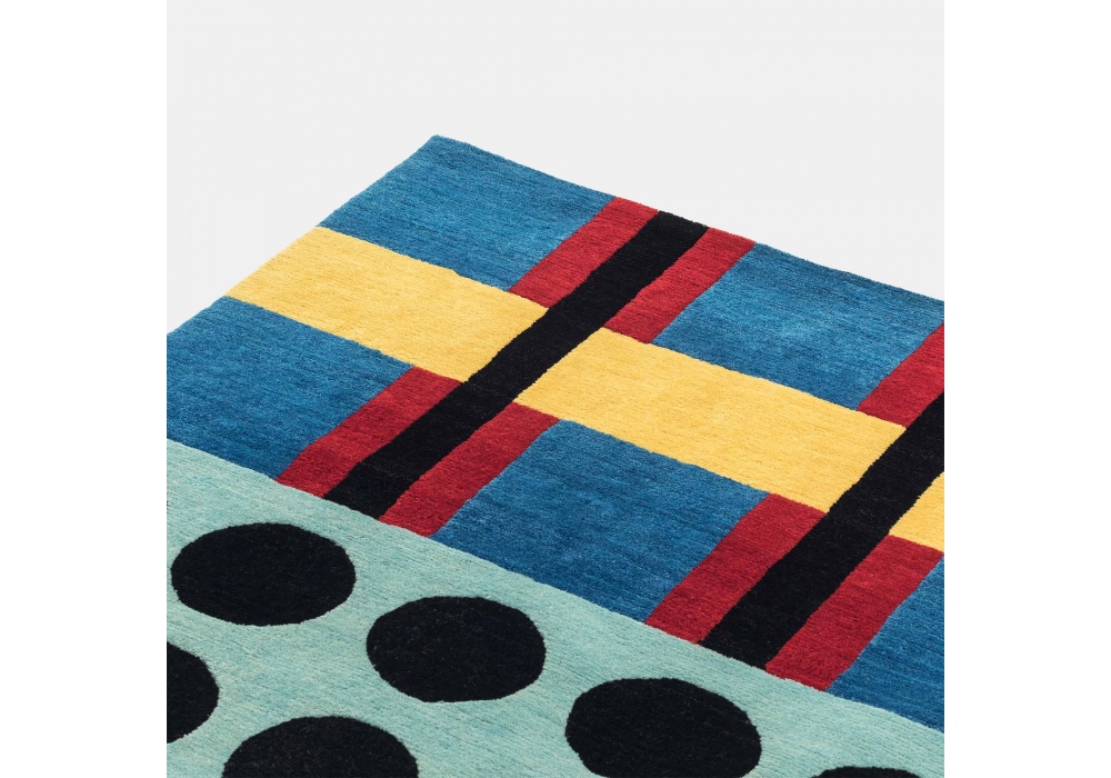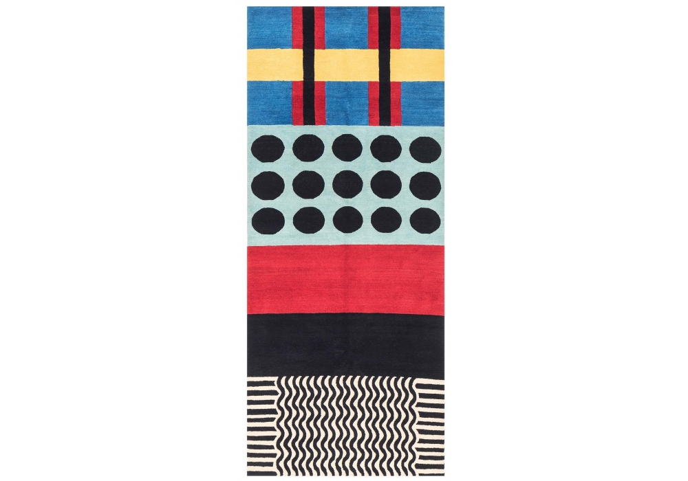 Ndp 55 designed by Nathalie Du Pasquier for Memphis Milano is a wool rug handmade by various artisans. Limited edition of 36 pieces.