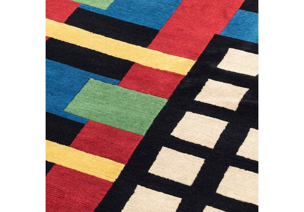 Ndp 56 designed by Nathalie Du Pasquier for Memphis Milano is a wool rug handmade by various artisans. Limited edition of 36 pieces.