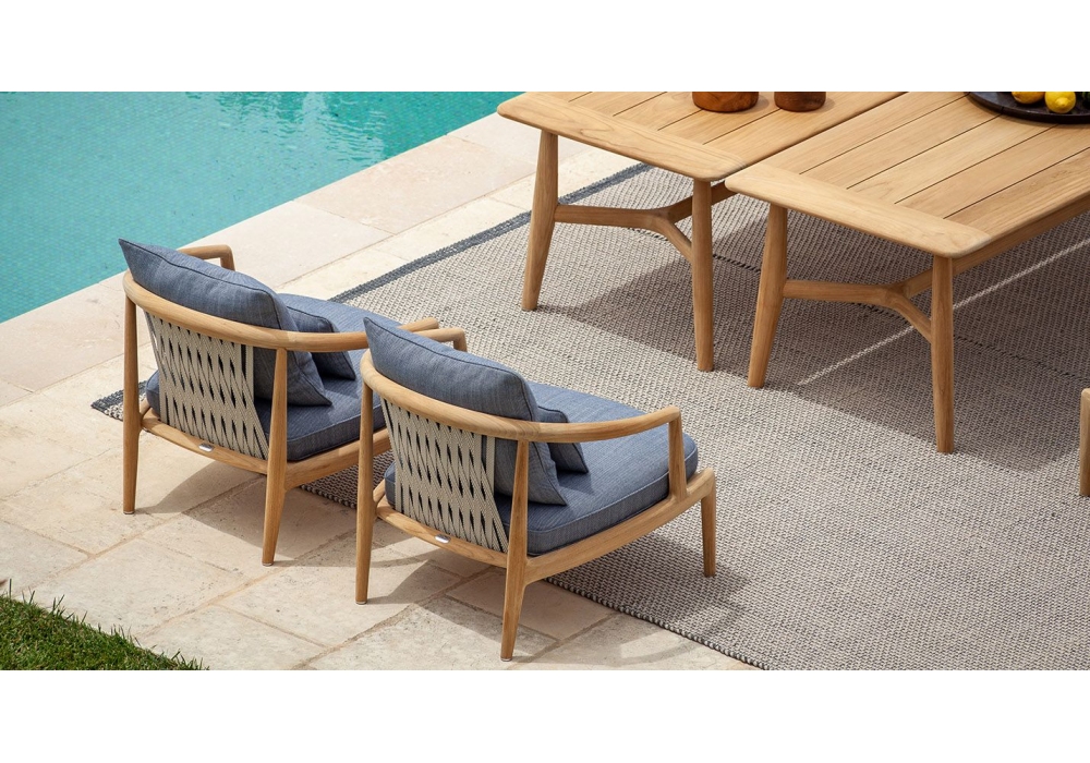 Grand Vizier designed by Poltrona Frau Style and Design Centre for Poltrona Frau is an outdoor rug made with a handloom weaving process and is characterised by a unique cross weave made with polypropylene cord with a circular section. It is available in two colours: dark grey or light grey.