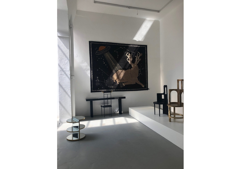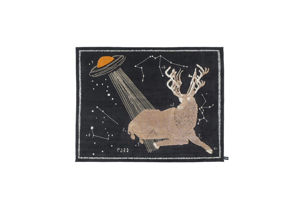 The Night of a Hunter - Deer at Night designed by Rooms Studio for CC-Tapis is a hand-knotted rug made of himalayan wool.
