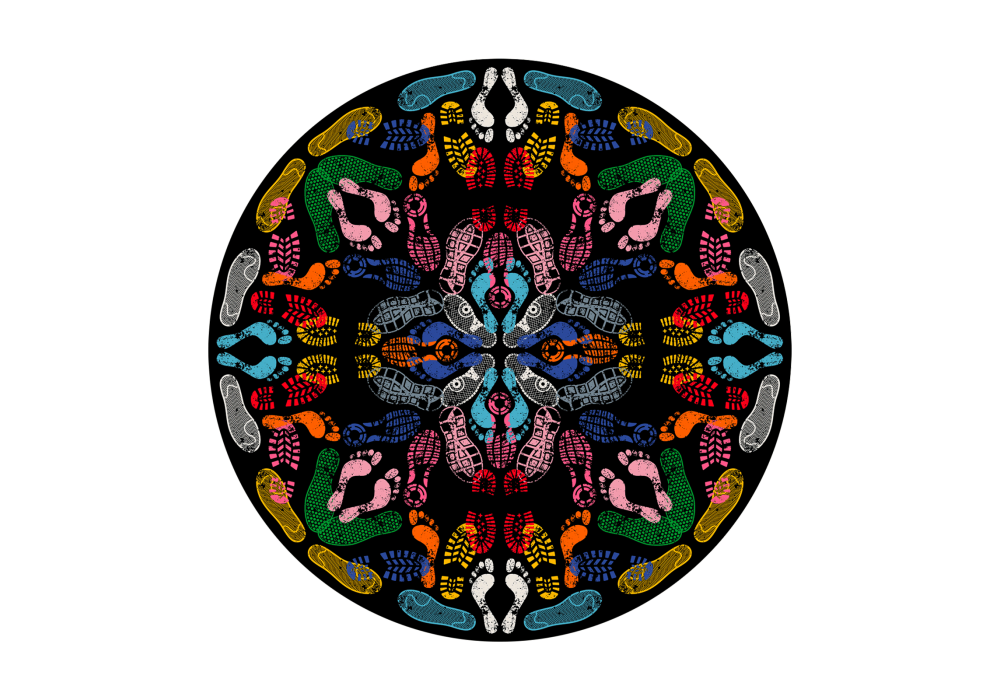Let's Dance Human Trances Dark Round Qeeboo Rug