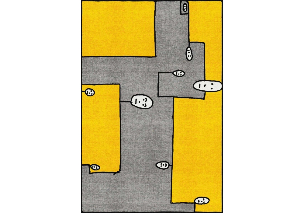 Dog Yellow Rectangular designed by Andrea Branzi for Qeeboo is a quadrangular shaped rug in non-slip polyester and polyamide with various shades of color.
