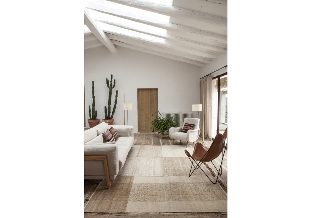 Tres Vegetal designed by Nani Marquina and Elisa Padrón for Nanimarquina is a hand-framed rug made of 65% Jute, 23% wool felt and 12% New Zealand wool. Available in different dimensions.