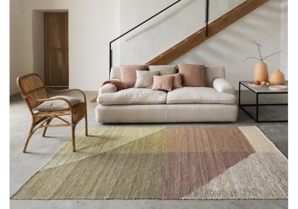 Capas designed by Mathias Hahn for Nanimarquina is a rug made of Afghan wool hand-spun with a kilim-like technique and can have natural irregularities and a rustic finish, the dyeing and irregularities of the yarn can give rise to different shades of color. It is available in two sizes and in different color finishes.