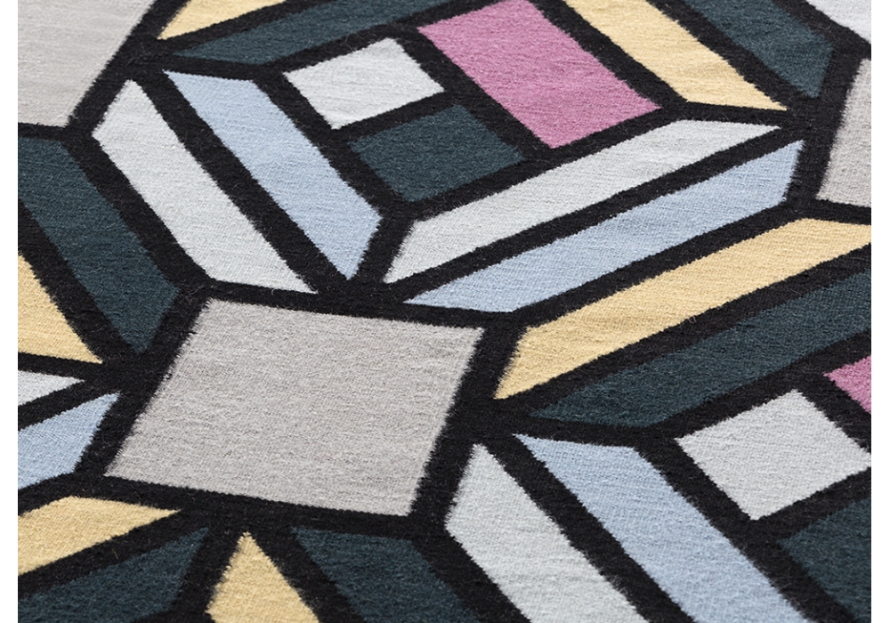 Parquet Tetragon designed by Front for GAN is a rug made of 100% wool with the Kilim technique. Available in various sizes.