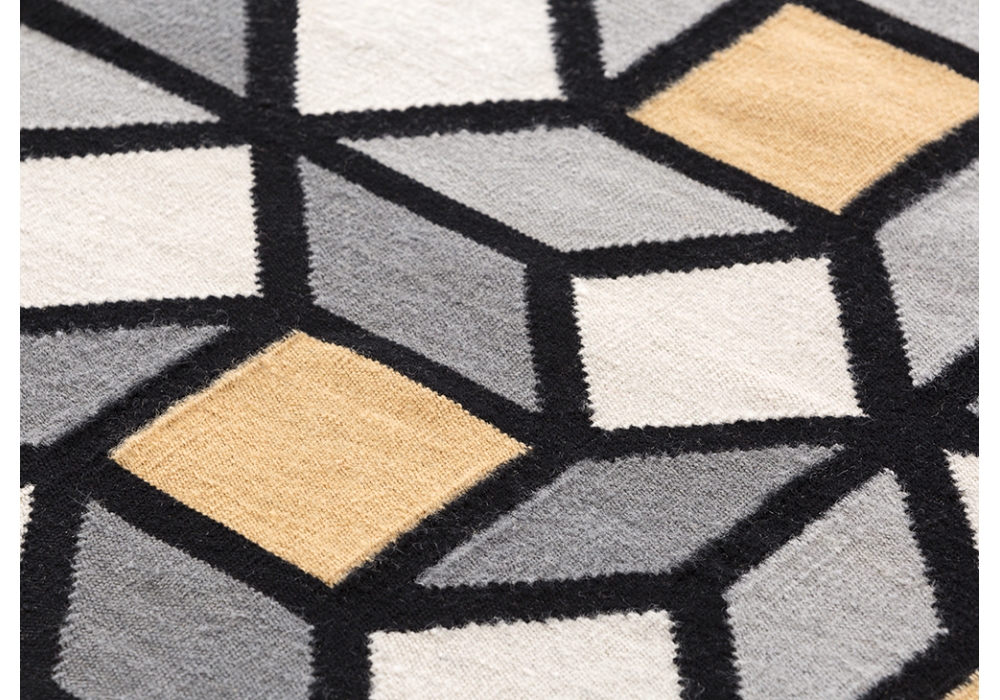 Parquet Rhomb designed by Front for GAN is a rug made of 100% wool with the Kilim technique. Available in various sizes.