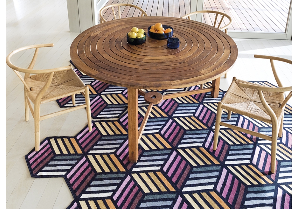 Parquet Hexagon designed by Front for GAN is a rug made of 100% wool with the Kilim technique. Available in various sizes.