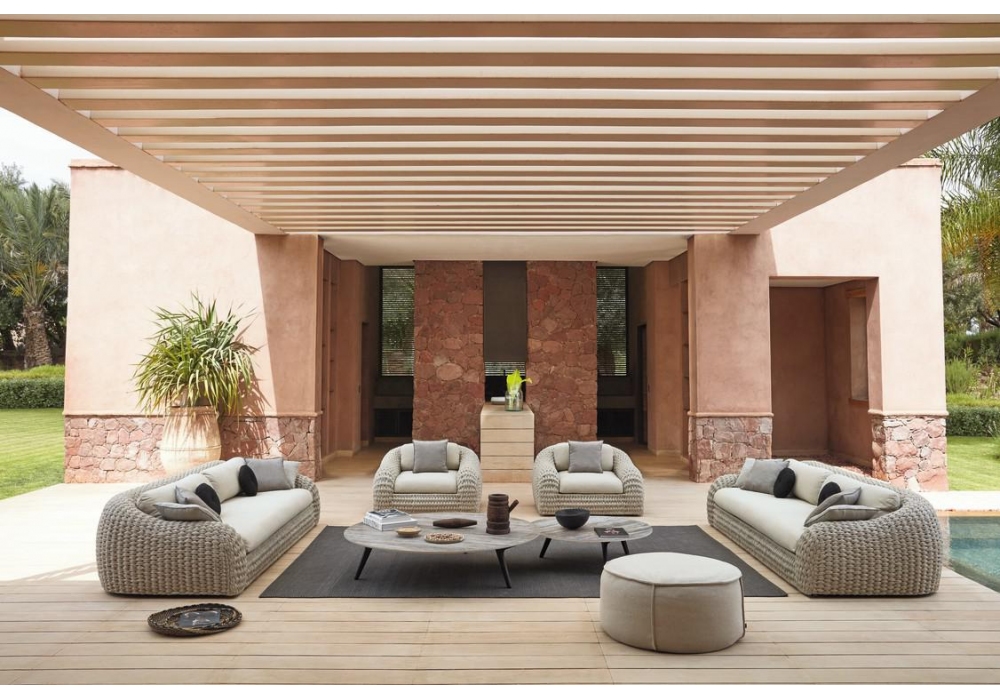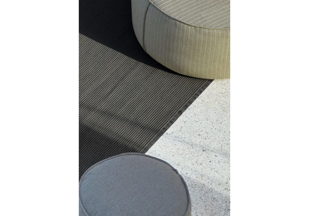 Linear designed by Stephane De Winter for Manutti is an outdoor rug made of textilene and resistant to all weather conditions. Available in three sizes in anthracite or pepper finishes.