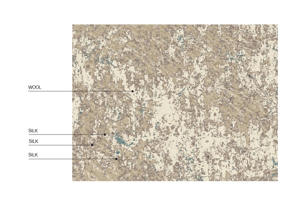 Gobi designed by AL1 for Longhi is a rectangular rug handmade on wooden looms made up of 50% wool and 50% natural silk. Wool base and multi-silk design. Since these are natural colors, the shades are to be considered indicative.