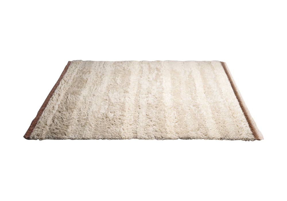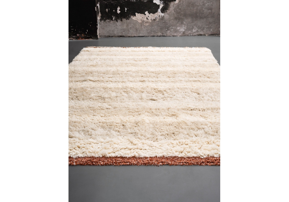 Kuschel designed by Salem van der Swaagh for Tacchini is a rug made of natural wool and silk. The texture is made up of hand-woven and knotted threads and fringes in warm tones.
