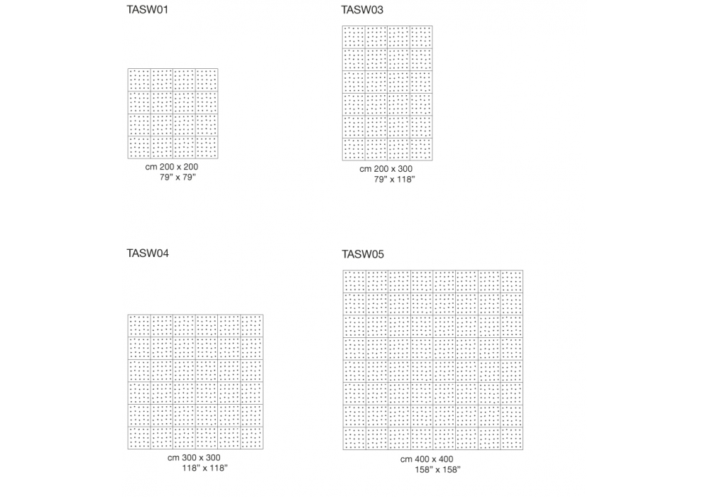 | Dimensions | 200 x 200 cm; 200 x 300 cm; 300 x 300 cm; 400 x 400 cm. |