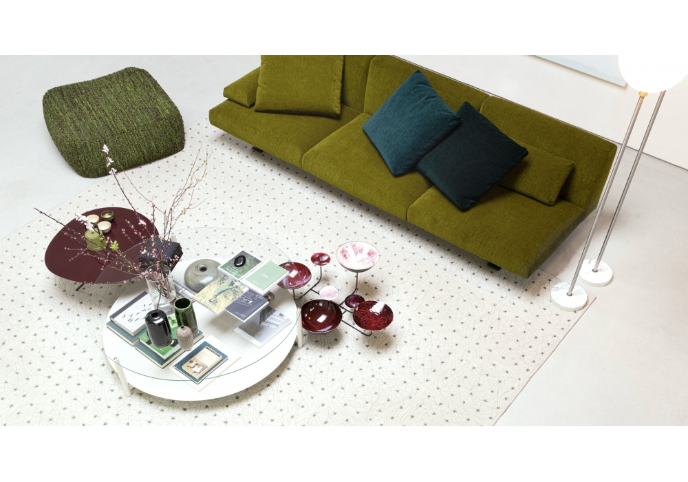 Starways designed and produced by CRS Paola Lenti is a carpet made of Paola Lenti Felt. The surface of the carpet is obtained by sewing together with a Zigzag stitch square elements measuring 50 x 50 centimeters each. Each element is decorated with an abstract design. The perimeter stitching is done in Cavallo stitch. The carpet is produced with a single layer of felt. Available in various sizes.