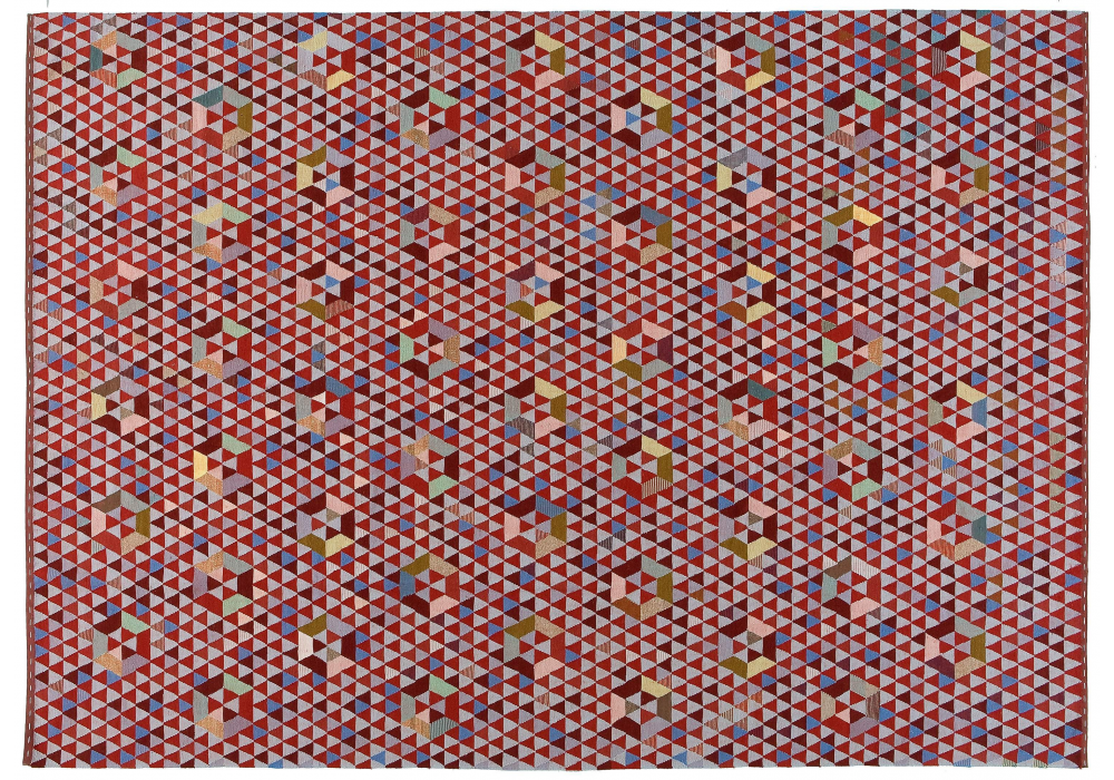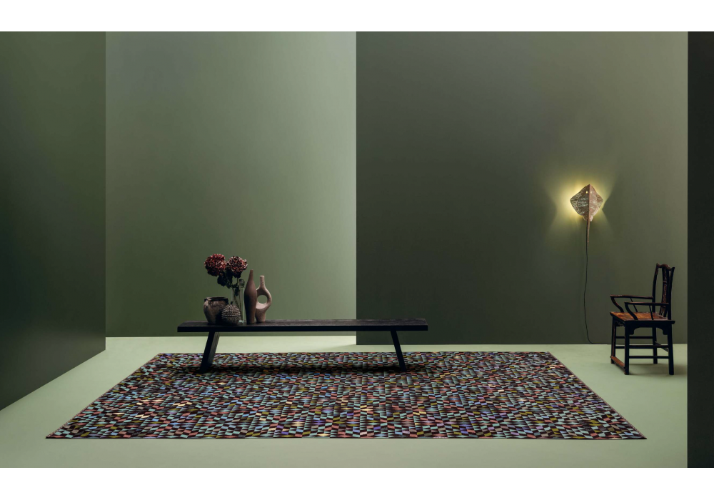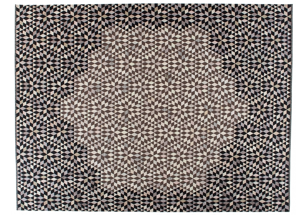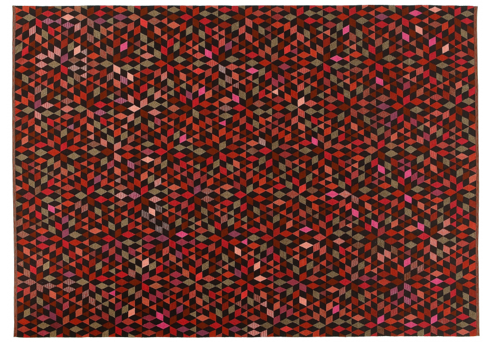 Triangles designed by Bertjan Pot for Golran is a flat-woven rug hand-knotted using the KILIM technique. It is made of 70% wool, 15% silk and 15% cactus fibers.
