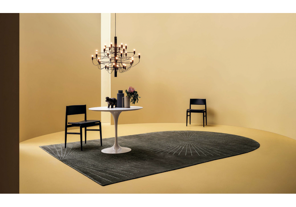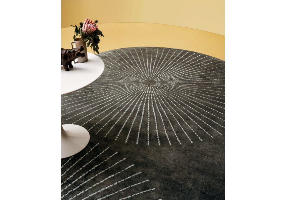 Irradia designed by Gamfratesi for Golran is a rug characterized by a soft hand-knotted wool and silk structure with a precise and graphic metallic pattern.