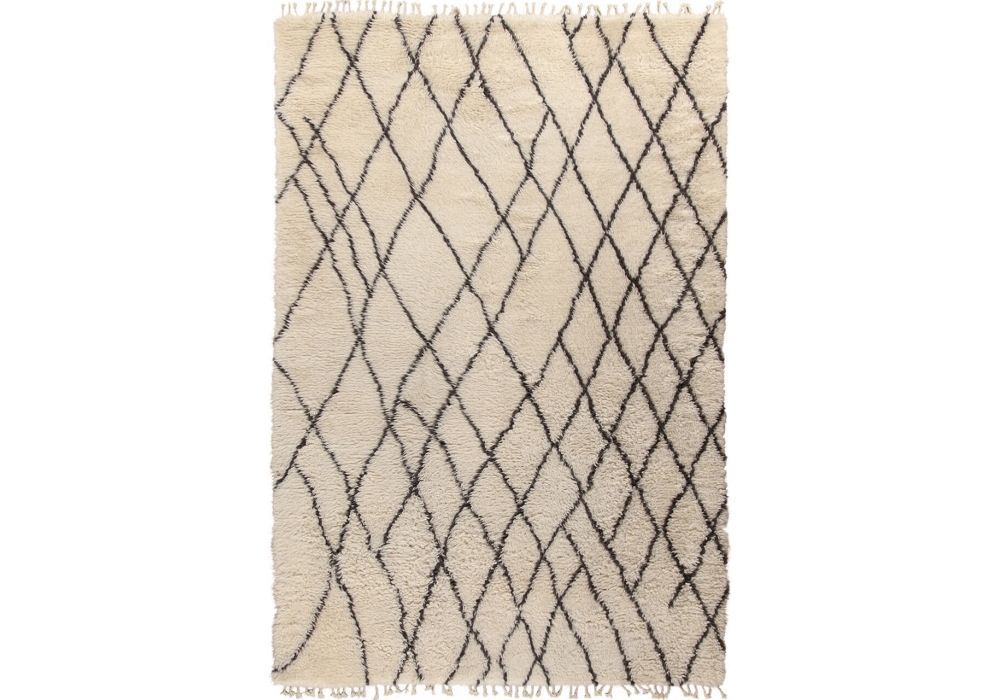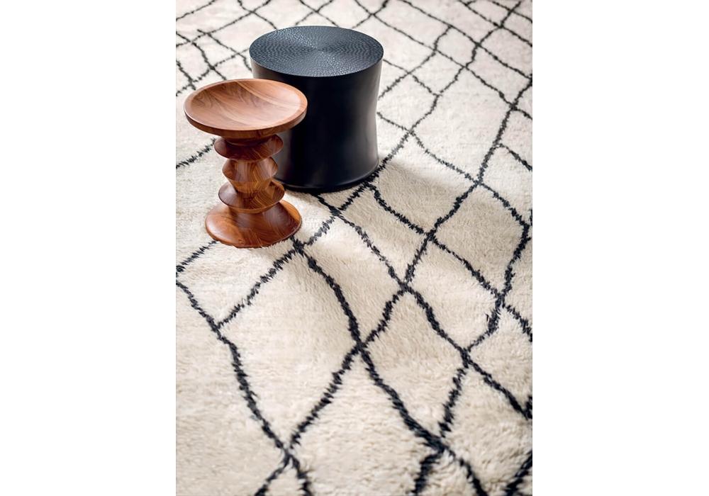 Nomadic Charcoal-Ivory designed by Amini is a rug for indoor use. Made of 100% blend of wool and mohair. Hand knotted. Available in four dimensions.