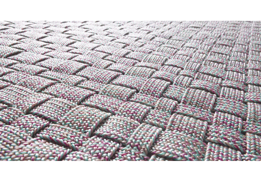 Stuoia designed by CRS for Paola Lenti is a rug made by hand-weaving flat braids of Twiggy yarn of three different sizes. The "fabric" obtained with this process is finished with a Zigzag stitch along the entire perimeter.